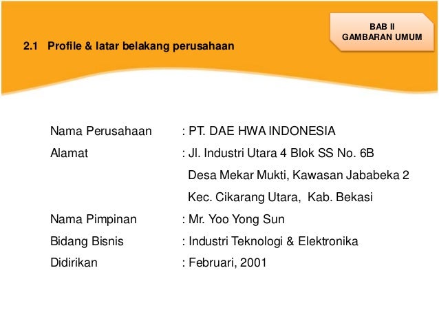 Contoh Laporan Presentasi Pkl Di Pt Dae Hwa Indonesia (dhi) via www.slideshare.net